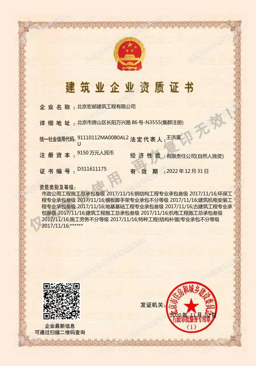 热烈祝贺北京宏邺建筑工程有限公司成功签订《新馨苑项目市政工程管廊及